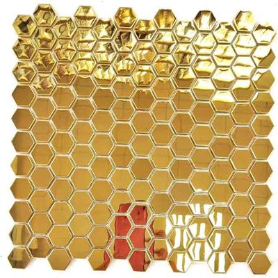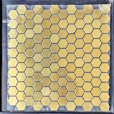 کاشی موزاییک استیل ضد زنگ شش گوشه رنگ طلایی برای طراحی داخلی