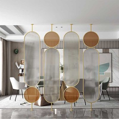 رنگ طلا از فولاد ضد زنگ جداکننده صفحه نمایش شکل گرد خط مو با هنر شیشه دکوراسیون اتاق نشیمن سبک مد