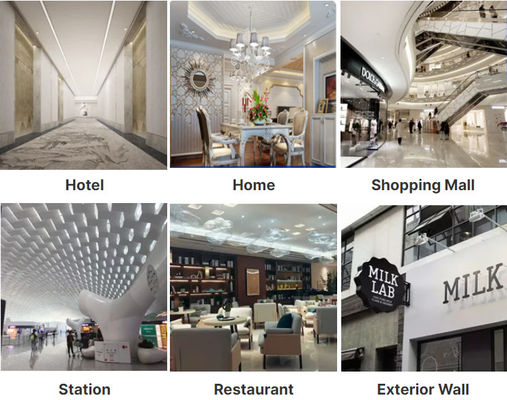 به طور گسترده ای در تزئینات معماری و داخلی مانند تزئینات آسانسور، درب های لوکس،تزئینات دیواری، تابلوهای تبلیغاتی، لوازم بهداشتی، تزئینات سقف، راهرو، سالن هتل، نمای فروشگاه و غیره.