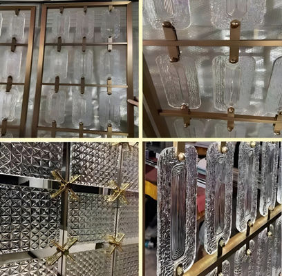 طراحی سفارشی از فولاد ضد زنگ شیشه سبز کریستال اتاق نشیمن ورودی فوی صفحه نمایش