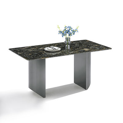 میز مدرن سنگ سینتر شده سیاه رنگ آینه پایه فولاد ضد زنگ میز ناهار خوری