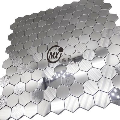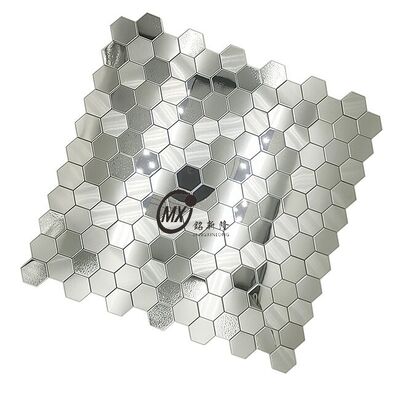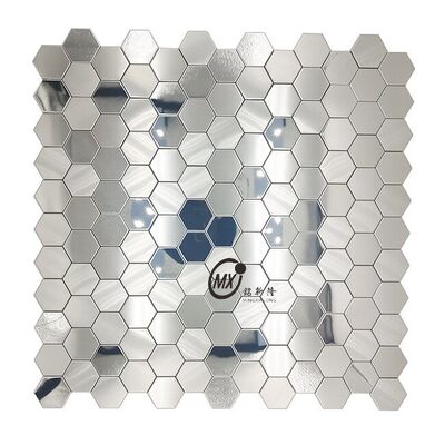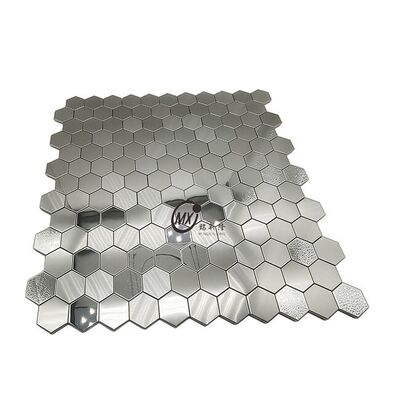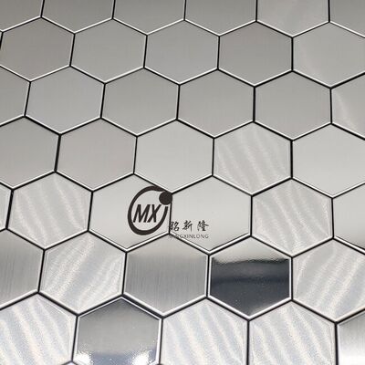 کاشی موزاییک مربع استیل ضد زنگ صیقلی نقره ای شش ضلعی ضد آب ضد روغن برای دکور دیوار حمام
