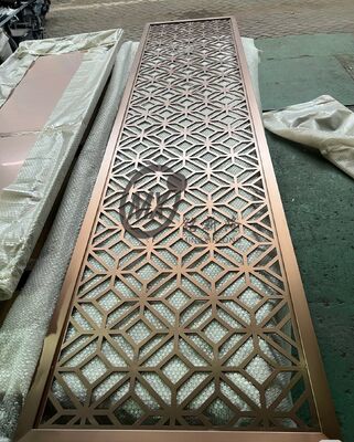 Chinese Style Laser Cut Stainless Steel Screen Partition with Flower Pattern and PVD Plating Titanium 5